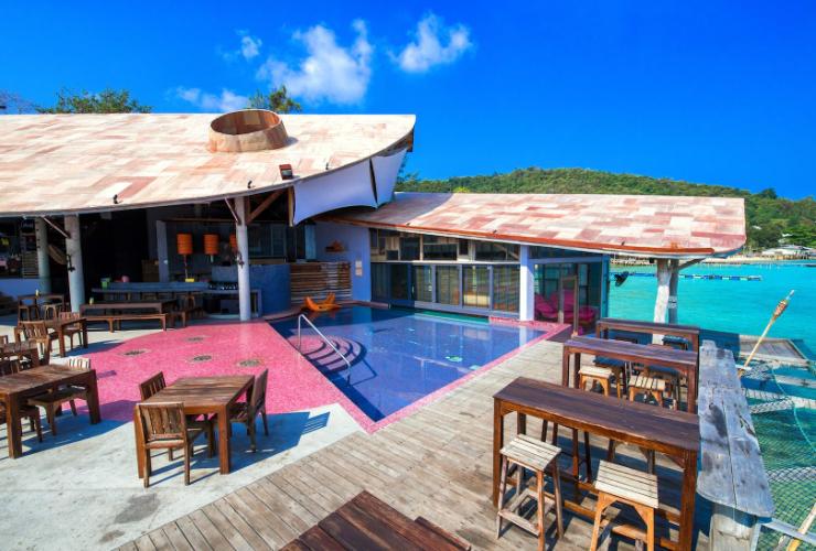 พอเริ่มค่ำก็ต้องตามหาแสงสี นั่งดื่ม ฟังเพลงชิลล์ ๆ สักหน่อย วนรถเพื่อไปนั่งที่บาร์ชิด ๆ เก๋ ๆ ยอดฮิตของเกาะ ที่ Bar and Bed กับบาร์ริมหาดติดสระว่ายน้ำสีแดงแสนฮิป ใน Concept Sleepless Society เอาใจคนนอนดึกด้วยแนวเพลงเฮ้าส์ เรทโทร และอิเลคโทร ชิลล์เพลินจนไม่อยากเข้านอน พอเริ่มจะหาวนอน ก็รีบกลับเข้าที่พักดีกว่า แอบบอกไว้นิดว่านอกจากร้อนอาหารและบาร์ ที่นี่ยังมีที่พักด้วยสวย เก๋ ฮิปไม่แพ้บาร์เลย