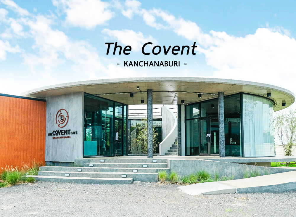 The Covent Cafe Kanchanaburi คาเฟ่สไตล์โมเดิร์นลอฟท์ดีไซน์ตัวร้านเป็นวงกลม แปลกตา สวยงามโดดเด่นไม่เหมือนใคร ภายในมีสวนตรงกลางและน้ำตก มีบันไดสามารถขึ้นไปชมวิวบนดาดฟ้าได้ ในโซนห้องแอร์ก็มีให้เลือกนั่งหลายมุม กระจกใสรอบร้านเวลาแสงส่องคือสวยมาก ส่วนด้านนอกก็จะเป็นโซนสนามหญ้าพร้อมกับมุมชิงช้า มีห้องไพรเวทสำหรับจองจัดปาร์ตี้ส่วนตัวได้ด้วย ร้านเป็นแนวคาเฟ่มีทั้งกาแฟ เบเกอรี่ และอาหารให้ทาน กาแฟของที่นี่ดีมากเหมาะกับคนรักกาแฟ