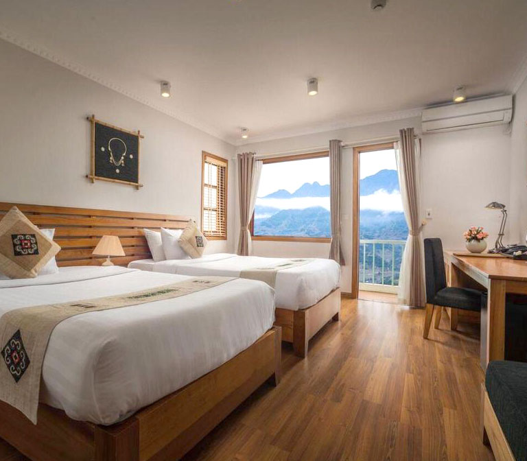Sapa Vista Hotel เป็นโรงแรมระดับ 3 ดาวสไตล์คลาสสิกมาในขนาดห้อง 28 ตารางเมตร ตั้งอยู่ใจกลางเมืองซาปาเลย แต่ในขณะเดียวกันคุณก็สามารถสัมผัสกับวิวภูเขาที่สูงตระหง่านให้คุณได้สัมผัสกับธรรมชาติจนต้องประทับใจอย่างแน่นอนเดินทางสะดวกสบาย อยู่ใกล้สถานที่ท่องเที่ยวมากมาย เอกลักษณ์ที่โดดเด่นของโรงแรมนี้ถูกออกแบบให้เหมาะกับครอบครัวอย่างมาก มีบริการตู้เย็นมินิบาร์ และพื้นที่นั่งเล่นให้คุณได้พักผ่อนหย่อนใจมากมาย โดยในห้องพักนั้นจะมีอุปกรณ์อำนวยความสะดวกอย่างครบครัน สำหรับนักท่องเที่ยวที่ชื่นชอบกิจกรรม Adventure โรงแรมแห่งนี้มีบริการปีนเขาและขี่จักรยานให้คุณได้ชมธรรมชาติกันอีกด้วย ตั้งอยู่ใกล้กับสถานที่ท่องเที่ยวสำคัญมากมาย อีกทั้งยังมีบริการรถยนต์ให้เช่าเพิ่มความสะดวกสบายให้กับคุณขั้นสุด